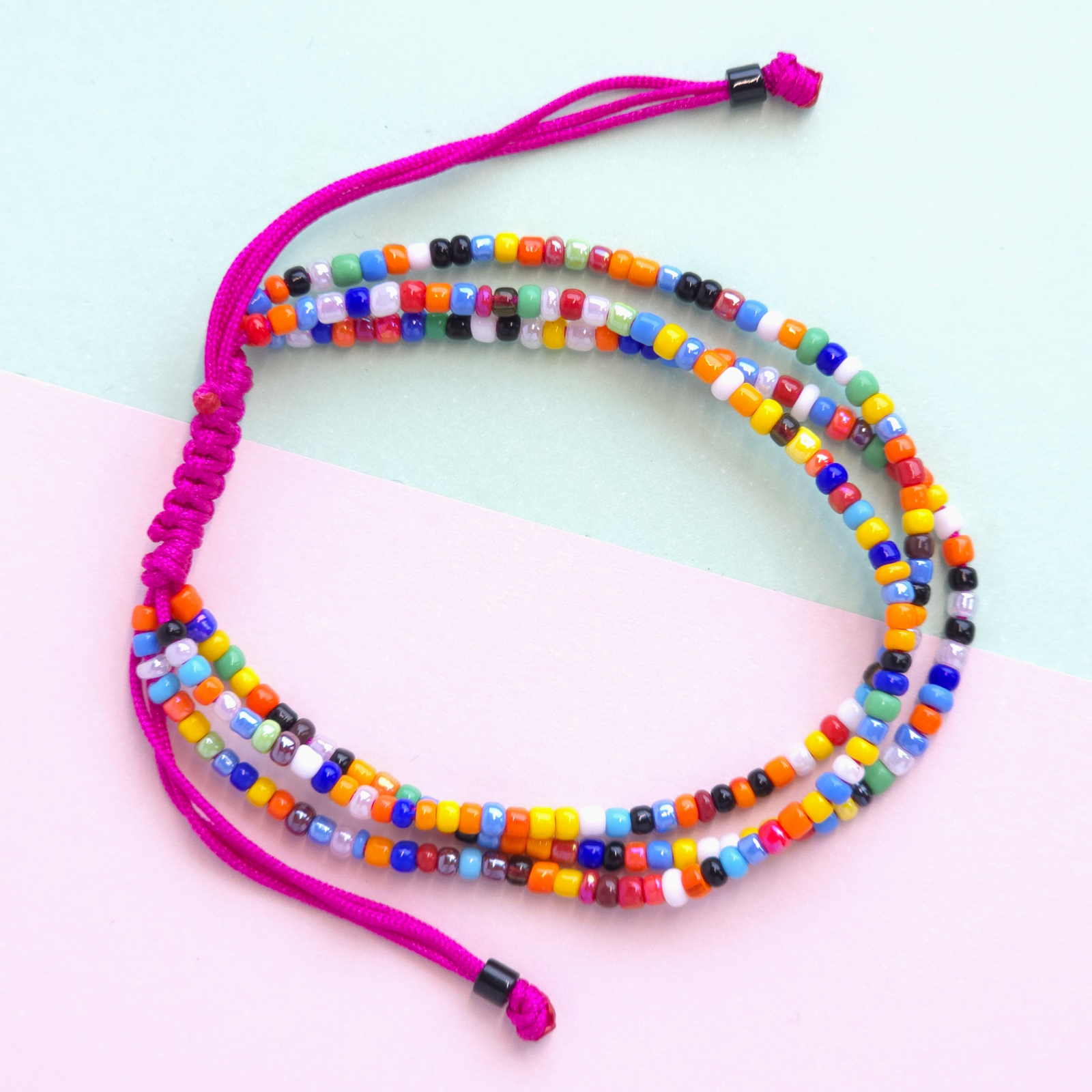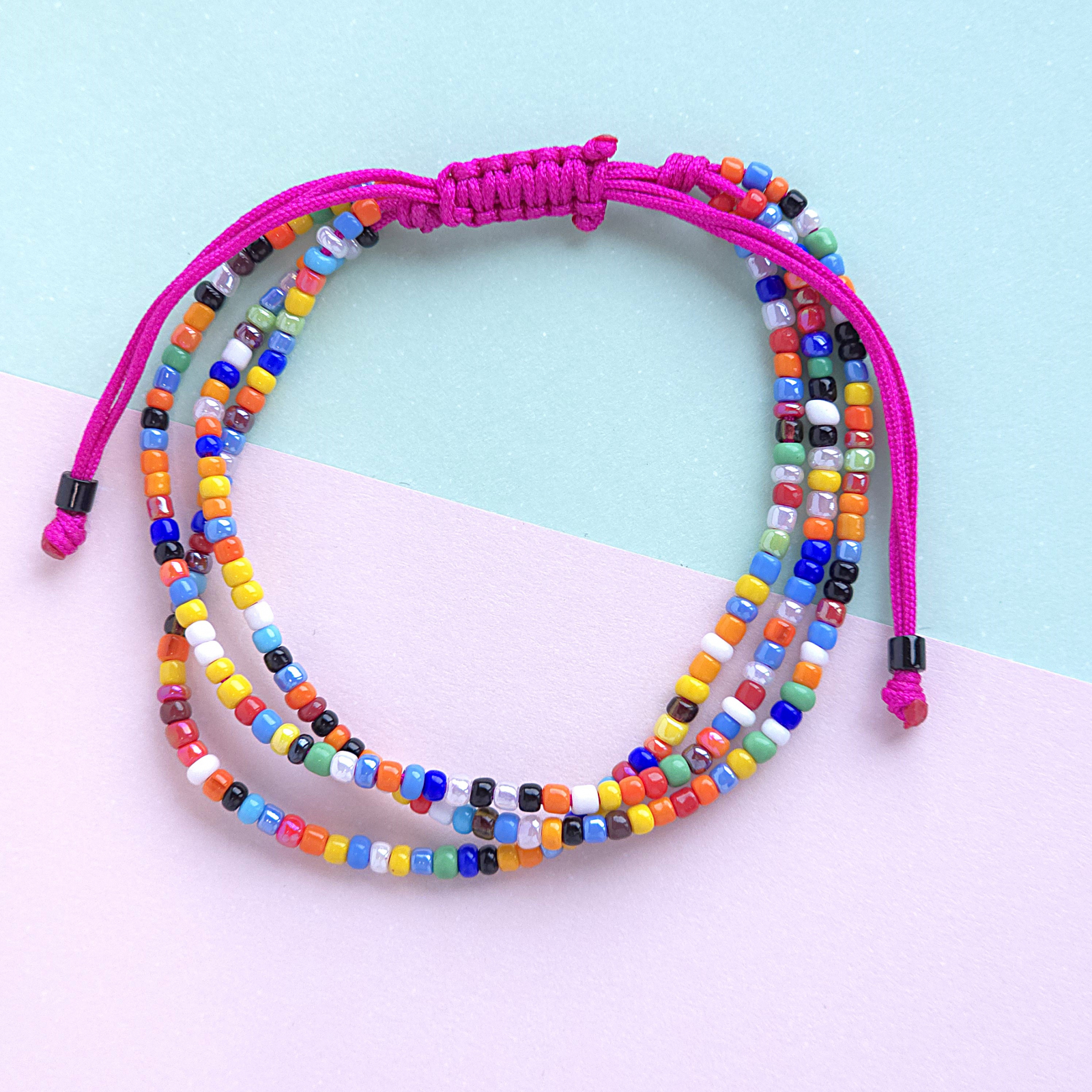 Bratara este confectionata din margele de nisip avand culori vibrante.